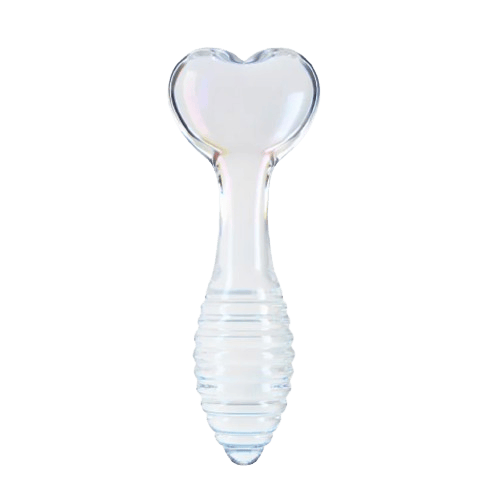 Plug anal de vidro com formato de coração transparente, feito de vidro temperado, sendo assim mais dificil de quebrar, mas sempre verifique se o plug não contem nenhum rachado/trincado.