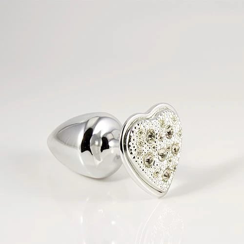 PLUG ANAL TAM. M CROMADO FORMATO CORAÇÃO COM DETALHES EM PEDRA