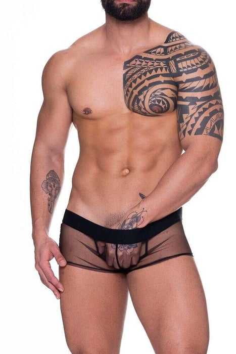BOXER TULE PRETO TRANSPARENTE SEM FORRO TAM. ÚNICO