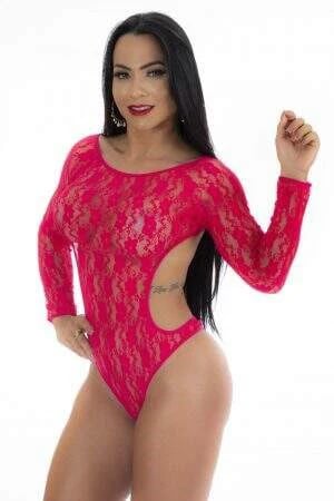 Body Escandalo Pimenta Sexy,todo em renda com manga longa.