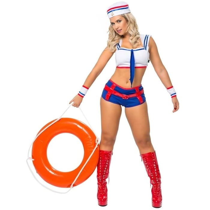 Seja graciosa como a Marinheira Lili e leve seu amor para navegar em altos mares, entre no clima e surpreenda. Fantasia composta de uma blusa com gola estilo marinheiro, shorts sensual com cinto, par de punhos e boina complementando. Você irá desfrutar de sensações maravilhosas nunca antes sentidas!