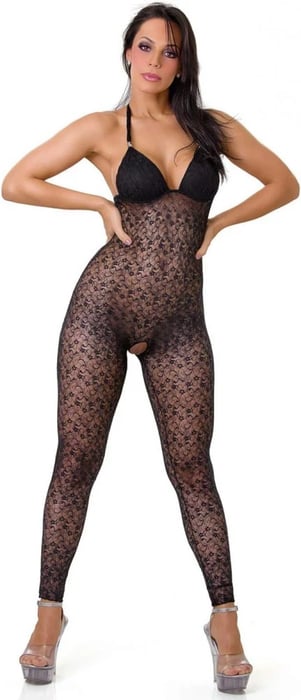 Macacão interessante preto - sensualle o macacão interessante longo e preto da sensualle, deixará você sedutora e elegante; sua cor e transparência sensualizam uma produção, ao ser usado com outras peças sobrepostas, ou estimulam os parceiros a atitudes eróticas quando é usado sozinho; super provocante, o macacão longo confeccionado em renda preta com poliamida e elastano tem elasticidade e amolda perfeitamente em seu corpo; os seios ficam valorizados com o drapeado do busto e as alças que amarram no pescoço e nas costas; o bojo que amolda e sustanta os seios no macacão tem estrutura de poliuretano que dá firmeza, mas é leve, flexível e atóxico; para aumentar a sensualidade e o conforto, o macacão possui na parte inferior do quadril uma abertura que possibilita ou não o uso de calcinhas; o macacão preto interessante da sensualle é prático de guardar porque é resistente ao amarrotamento, macio, tem secagem rápida e dispensa ser passado a ferro; cuidados: - não limpar a seco, não alvejar, não passar; lavar delicadamente, enxaguar bem, secar naturalmente.