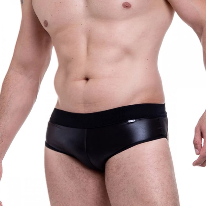 O Sunga Cirre é uma peça em cirro que imita couro, bastante procurada pelos homens.