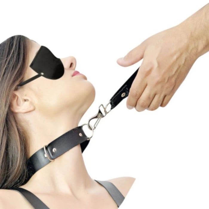 COLEIRA GUIA E MÁSCARA TAPA OLHOS FETICHE OUSADO PROVOCANTE BDSM
