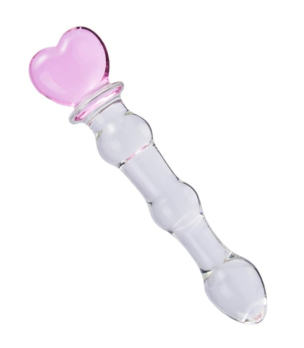 Dildo com formato de coração com ondulações estimuladoras ideal para para masturbação e penetração anal. É feito de material temperado, sendo assim, dificil de quebrar, mas sempre verifique se não contem nenhum rachado/trincado.