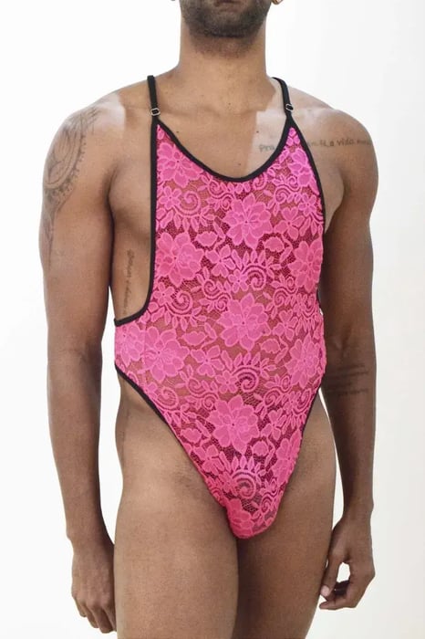 BODY EM RENDA NA COR ROSA COM REGULADOR